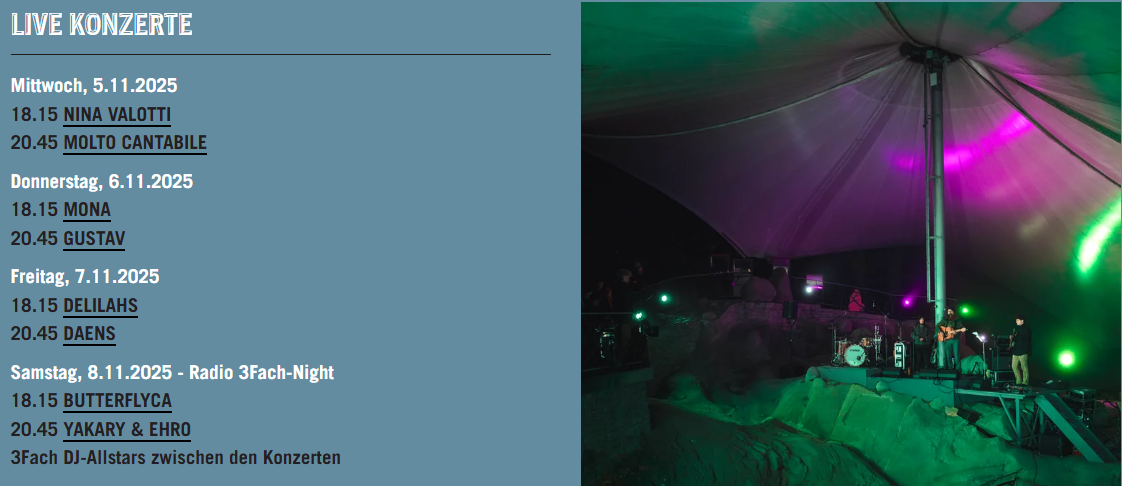 Line Up vom Gletschergarten by Nights 2025 | Q: gletschergarten.ch