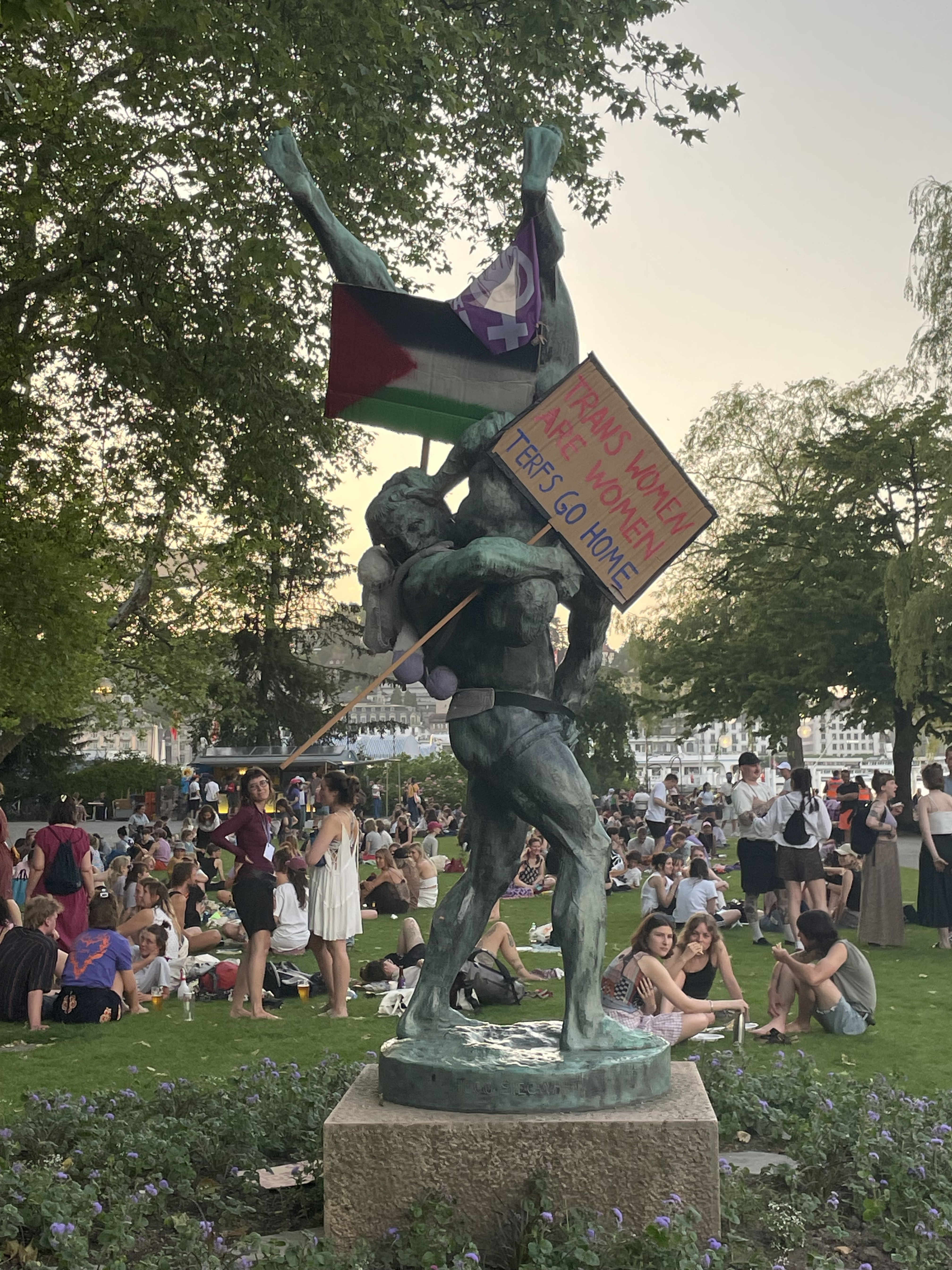 Am feministischen Streik stand dieses Jahr besonders die Frage der bezahlten und unbezahlten Care-Arbeit im Vordergrund. Zur bezahlten Care-Arbeit gehören die Pflege und die Kinderbetreuung – beides Berufe, wo Frauen übervertreten sind und schlecht bezahlt werden. Hier forderte der Streik bessere Löhne, bessere Arbeitsbedingungen und eine bessere Vereinbarung von Beruf und Familie. Auch die Mehrfachdiskriminierung ist in diesem Zusammenhang ein Thema, da viele Migrant*innen in der Pflege arbeiten und gerade hier ein besserer Schutz von Ausbeutung gefordert wird. Unter unbezahlter Care-Arbeit versteht man die Fürsorge für Kinder, die Haushaltsführung und die Pflege von hilfsbedürftigen Angehörigen. Diese Arbeit wird laut dem Bundesamt für Statistik zu 60% von Frauen und nur zu 40% von Männern ausgeübt. Bei der Kinderbetreuung ist dieser Unterschied noch einmal deutlich grösser: Hier leisten Frauen etwa doppelt so viel Arbeit wie Männer. Dementsprechend standen am feministischen Streik in diesem Zusammenhang gleich mehrere Forderungen im Raum. Neben einer fair aufgeteilten Elternzeit zusätzlich zum Mutterschaftsurlaub, genügend bezahlbaren Kitas und bezahlbare Dienstleistungen für Menschen mit Pflegebedarf forderten die Teilnehmer*innen ganz generell mehr Anerkennung und Wertschätzung für Care-Arbeit.