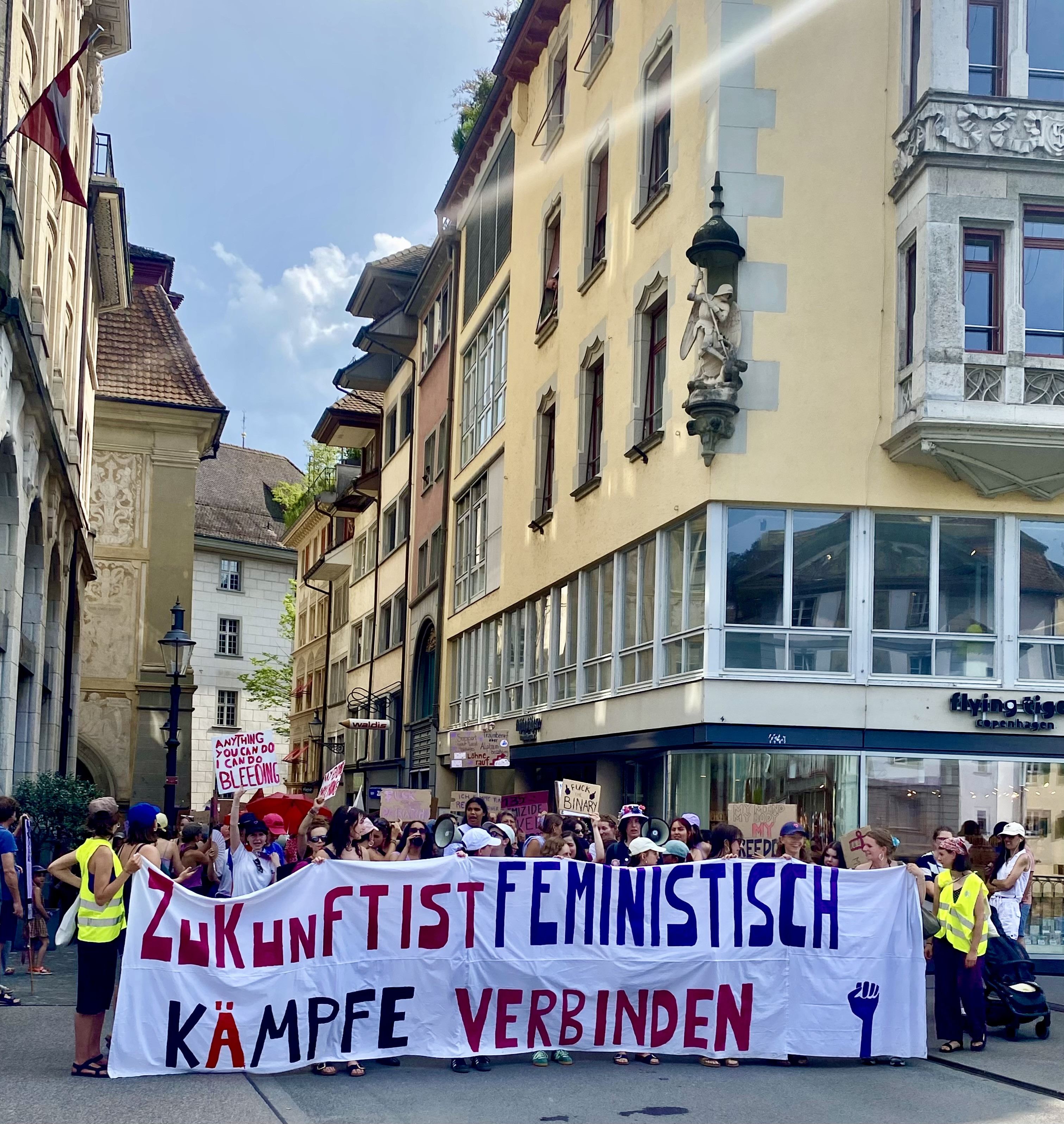 Rund 3000 violett gekleidete Protestierende zogen am letzten Samstag durch die Luzerner Altstadt: Es war der 14. Juni – also feministischer Streiktag! Die Forderungen der Teilnehmer*innen waren vielfältig, besonders im Fokus stand allerdings die bezahlte und unbezahlte Care-Arbeit. Doch wieso findet der feministische Streiktag überhaupt am 14. Juni statt? Und wieso heisst es heute feministischer Streiktag und nicht mehr Frauenstreik?