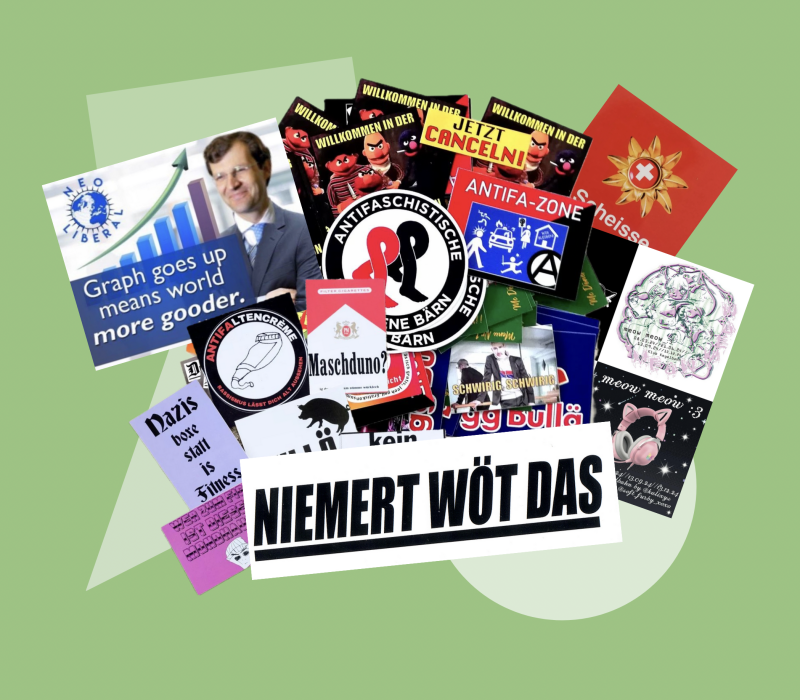 Das alles sagt uns auch stewia2046. stewia führt selber eine Memepage auf Instagram, ist Teil des Sticker-Kollektivs Slapmebaby, welche also auch selber Sticker macht und bald ein neues Zine veröffentlicht. Weiter schrieb er einen Gastbeitrag für das Museum für Kommunikation und war auch schon bei uns in einer Sendung.