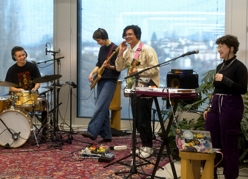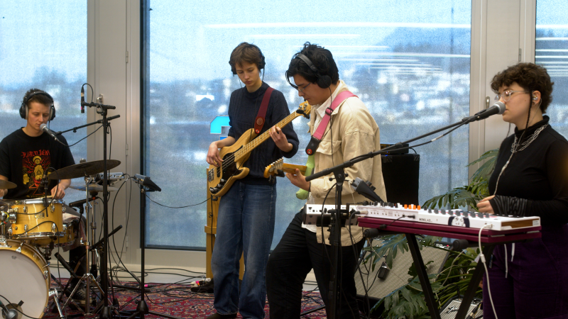 Neben Schlaufe, einem Instrumentaltrack ab ihrem Debutalbum, sind in der Mitschnitt-Livesession auch die Songs The Sky und Hybrid Story zu hören. Ersterer war bis jetzt nur als Demo auf Youtube und Soundcloud erhältlich, während Letzterer noch auf ein Release wartet. Neben der Livesession hatten wir auch die Freude, Nuria (Bass), Nicoline (Vocals und Synth), Nils (Drums und Vocals) und Lucas (Gitarre) im Interview ein bisschen näher kennenzulernen. In dieser Konstellation etwas weniger als zwei Jahre aktiv, erschaffen die vier neues Material vor allem durch freie Jams, so entstehen Songs mit einem sehr organischen Feel und viel Freiraum für neues. Wenn du mehr über die Entstehungsgeschichte von Aanim sowie die zukünftigen Pläne der jungen Studierenden wissen willst, findest du hier das ganze Interview.
