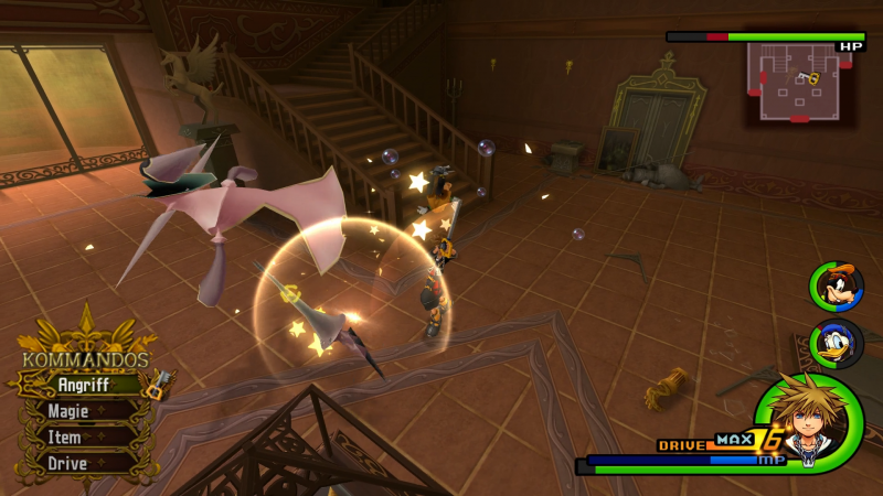 Kingdom Hearts spielt zum grossen Teile in den Welten von Disney-Filmen. So entstand ein eigentümliche Mischung, welche in der Videospielgeschichte nur wenigen gelungen ist: Die Verhandlung ernster Themen wie Verlust und Identität in einem farbenfrohen, fast kindlichen, Rahmen. Und dies ist sich Kingdom Hearts auch bewusst. Es kommt nämlich zu Szenen, wo Sora dramatisch eine Welt vor ihrem Untergang rettet und im nächsten Moment wird ein Minispiel mit Arielle der Meerjungfrau eingeleitet. In diesen skurrilen Mix betten sich ebenso die geschwollenen Monologe und Gespräche der Bösewichte, die stark an die Emo-Zeit der 00er Jahre erinnern. Durch die liebenswerten Charakteren, welche den Spielenden schnell ans Herz wachsen, kommt es so zu einem Sog, der einen nicht mehr loslässt. So fragt man sich was mit den Figuren als nächstes passiert oder was sich Kingdom Hearts als nächstes ausgedacht hat.