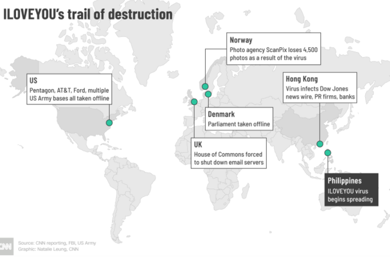 So sah es übrigens aus, wenn dein Computer von dem ILOVEYOU Virus betroffen war: