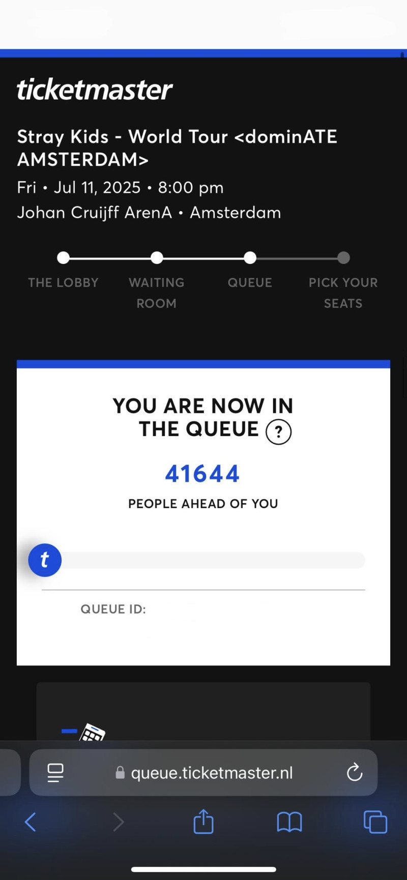 Beim Ticketkauf gibt es manchmal einen «Warteraum». Dieser öffnet meistens 15 Minuten vor Verkaufstart. Sobald der Verkauf beginnt, werden alle, die im Warteraum sind, zufällig in die echte Warteschlange einsortiert. Es spielt keine Rolle, wie früh du im Warteraum warst – die Reihenfolge wird am Schluss per Zufall verteilt.